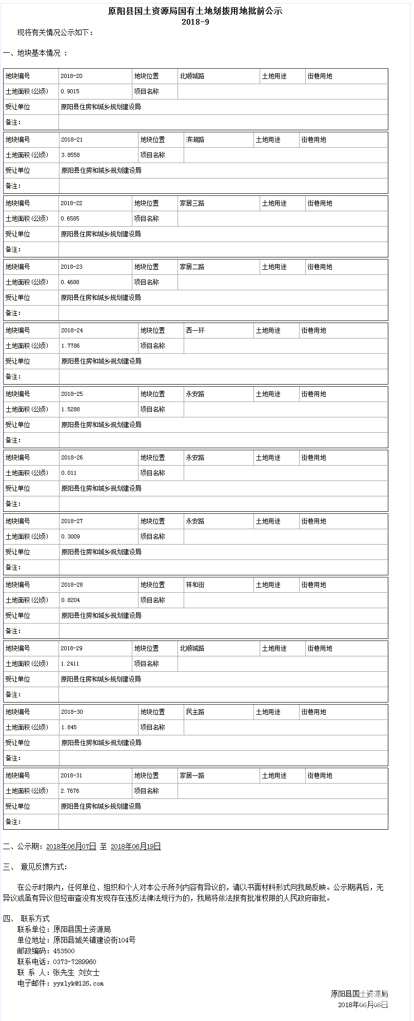 国有土地划拨用地批前公示(2018-9)