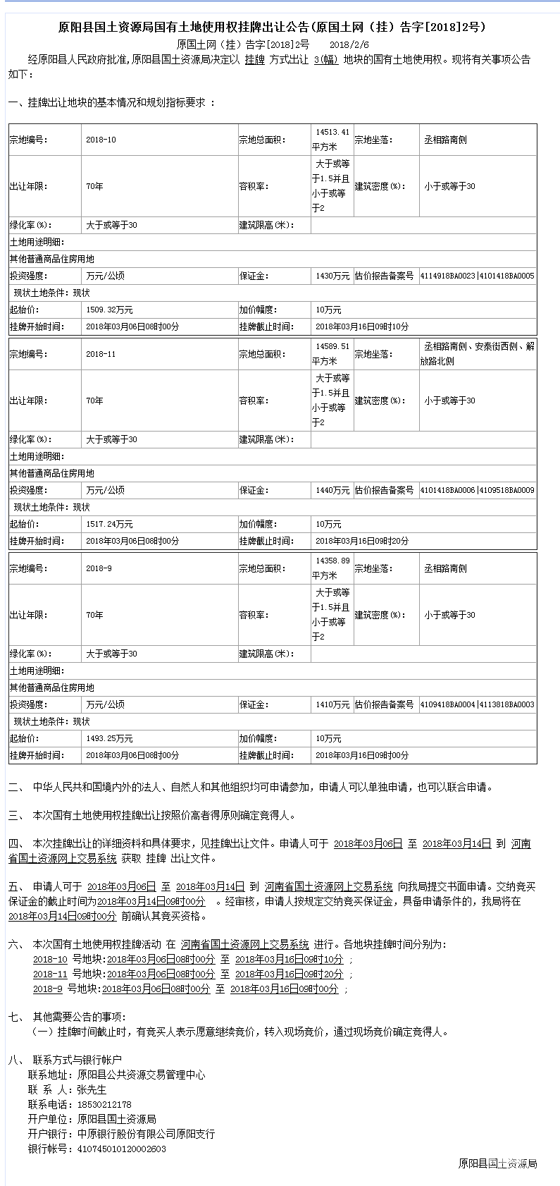 国有土地使用权挂牌出让公告(原国土网(挂)告字[2018]2号)
